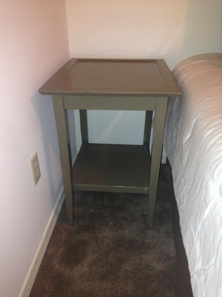 and on each side of the bed are two night stands he painted brown